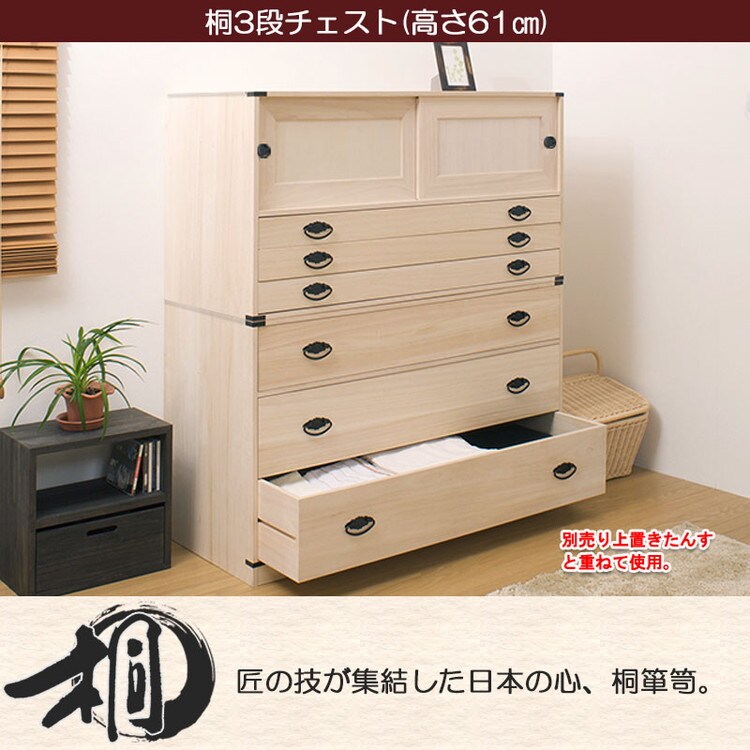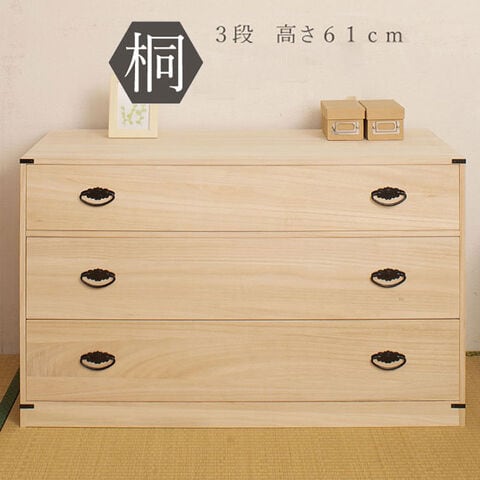 隠しスペース付き3段桐チェスト 高さ61 HI-0028 日本製 完成品【送料無料】