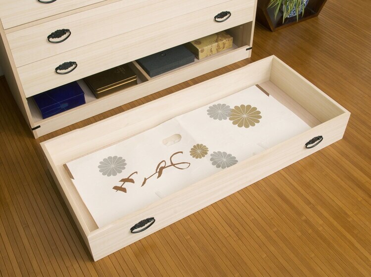 ■商品について/ たとう紙を折らずに収納できる幅広の桐チェスト