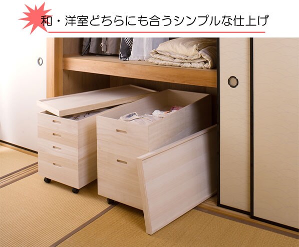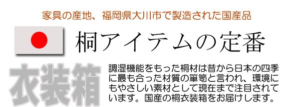 | 桐材は内部を一定の湿度に保とうとする働きがあり、大切な衣類の保管に最適です。家具で有名な九州・大川で生産しています。押し入れやクローゼットの中は湿気がこもりやすい、桐はまさにこれを解消できるアイテム!キャスター付で出し入れも楽々です。着物をタトウ紙に入れたままでも余裕で収納、少し背の高い方でも着物を折らずに収納できてこれも長期保管には大変便利ですキャスター付で移動も簡単 |