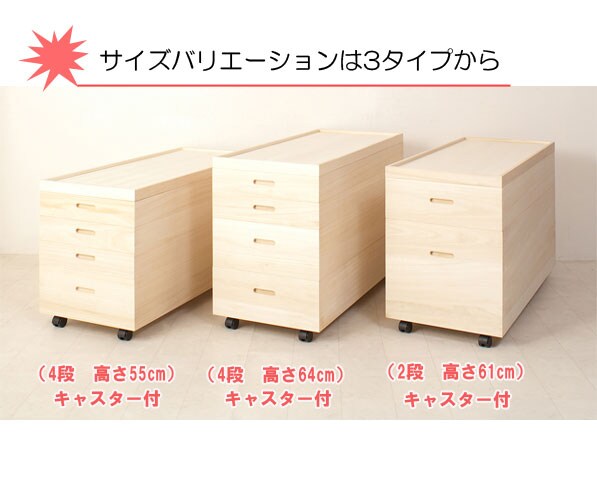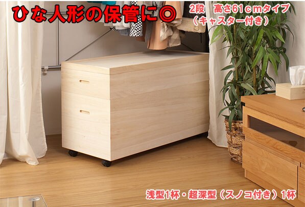 桐製収納ケース 高さ61(キャスター&スノコ付) HI-0037 完成品【送料無料】