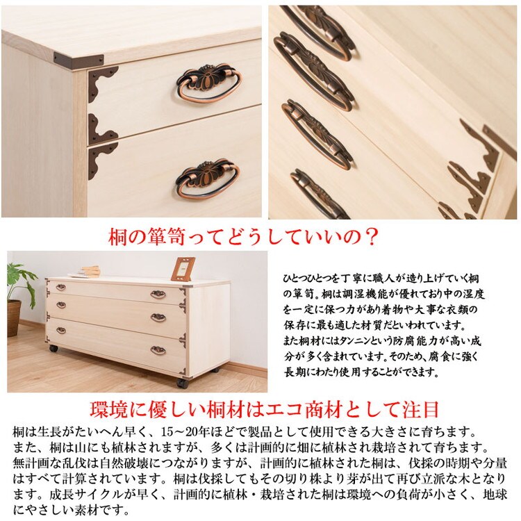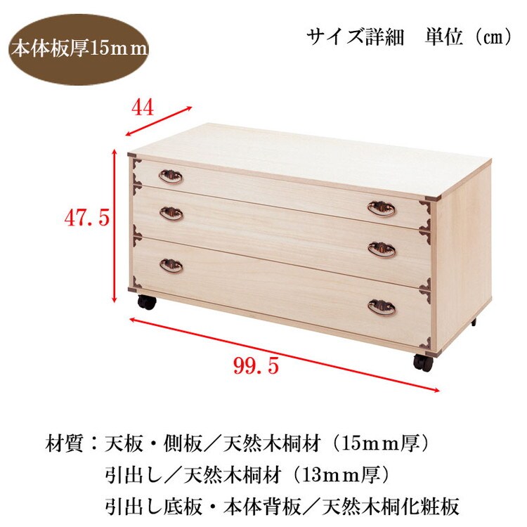 ■商品の仕様/本体:天然木(桐材)引出し底板・本体背板:天然木桐化粧板