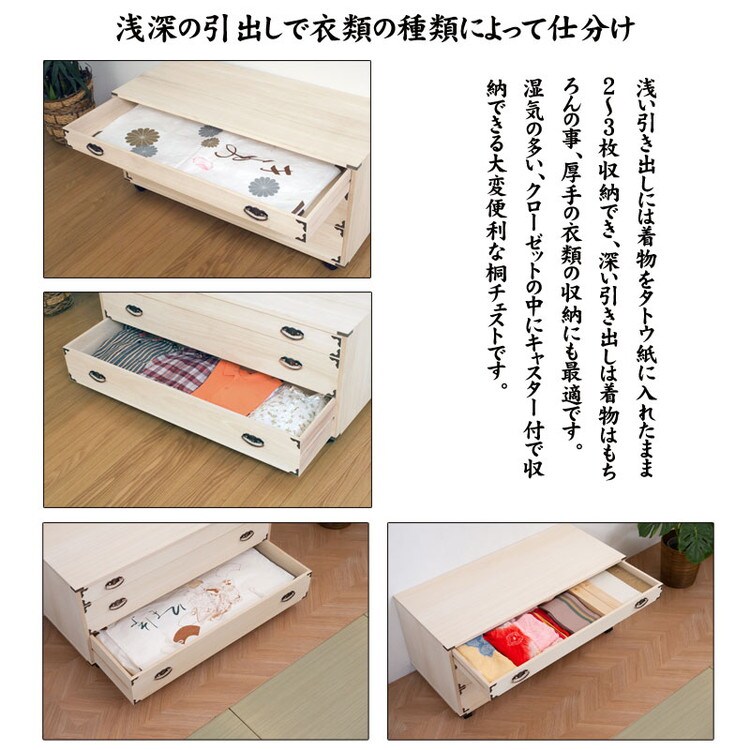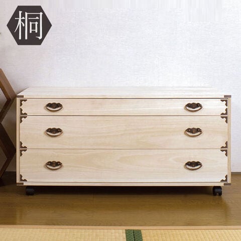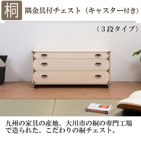 日本製 大川家具 完成品 桐 チェスト キャスター付き 押入れ 収納 押入れ収納 三段 3段 ラック 引き出し 桐材 天然木 和室 国産 組立不要【送料無料】