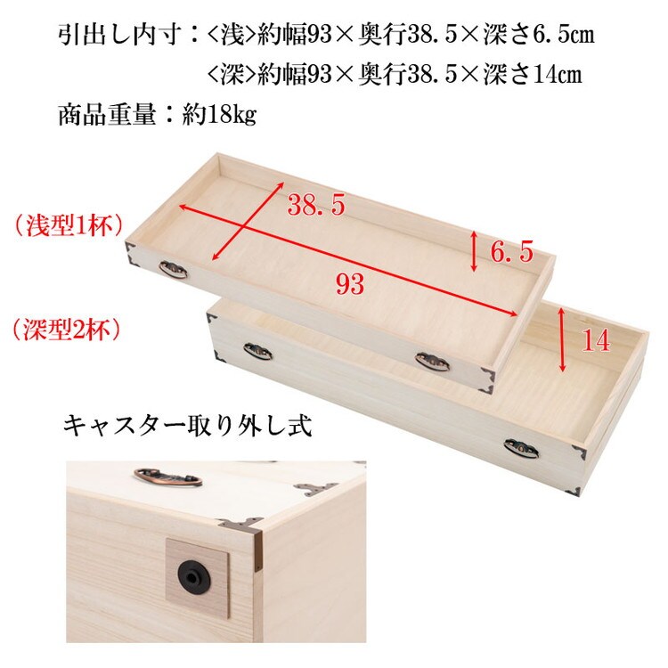 ■引出し内寸/(約)幅93×奥行38.5×深さ(浅)6.5(深)14cm
