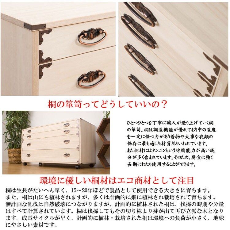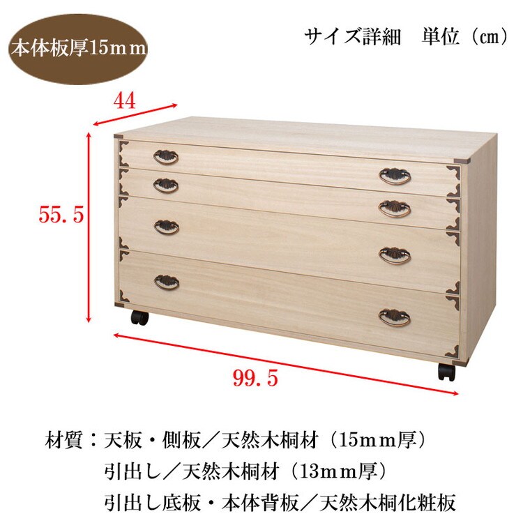 ■商品の仕様/本体:天然木(桐材)引出し底板・本体背板:天然木桐化粧板