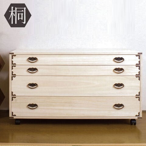 日本製 大川家具 完成品 桐 チェスト キャスター付き 押入れ 収納 押入れ収納 四段 4段 ラック 引き出し 桐材 天然木 和室 国産 組立不要【送料無料】