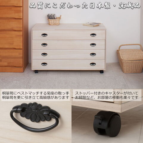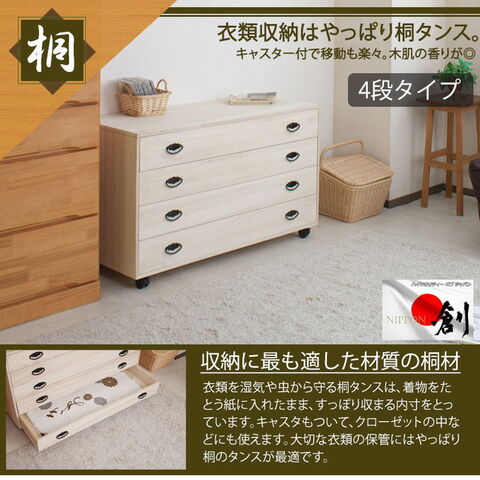 日本製 完成品 和の趣 キャスター付き 桐 タンス 四段 4段 チェスト 木製 天然木 たんす 国産 和室 玄関 引き出し 総桐 押入れ 北欧【送料無料】