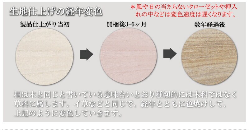 ■商品の仕様/本体:天然木桐材(水性塗装仕上げ)、引出し底板・背板:天然木桐化粧板