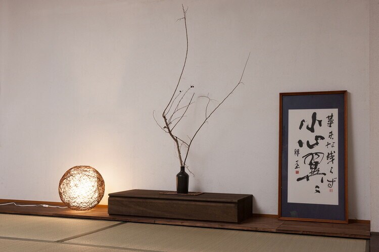飾り気のない高級感が掛け軸や一輪挿しなどの置物がいっそう映えます。