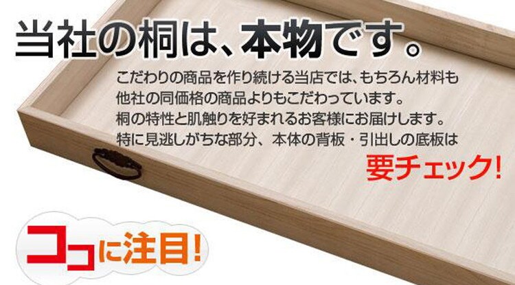 ■商品の仕様/本体:天然木桐材、引出し底板・背板:天然木桐化粧板