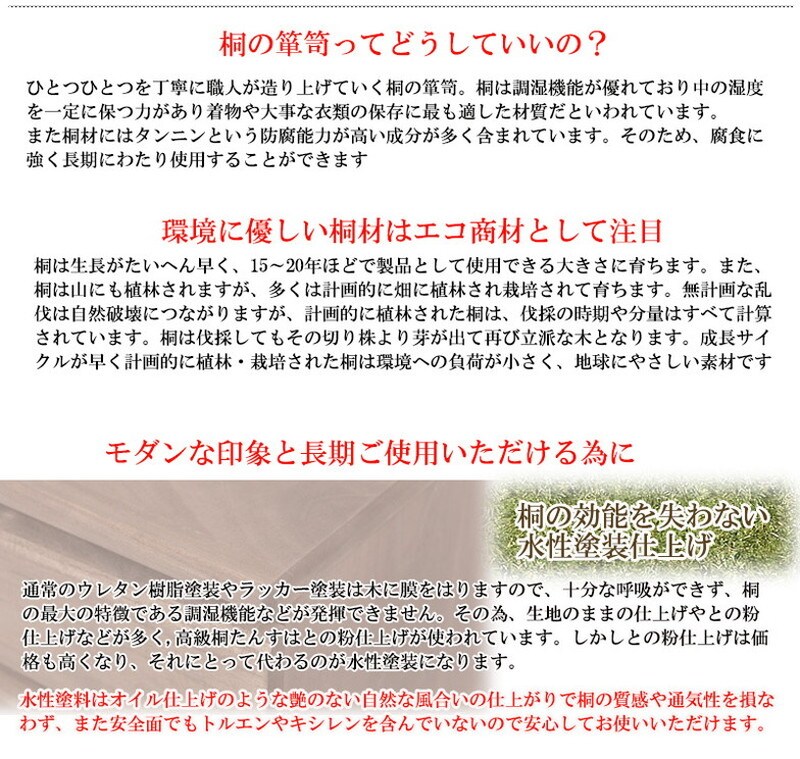 ■商品の仕様/本体:天然木桐材(水性塗装)、引出し底板・背板:天然木桐化粧板