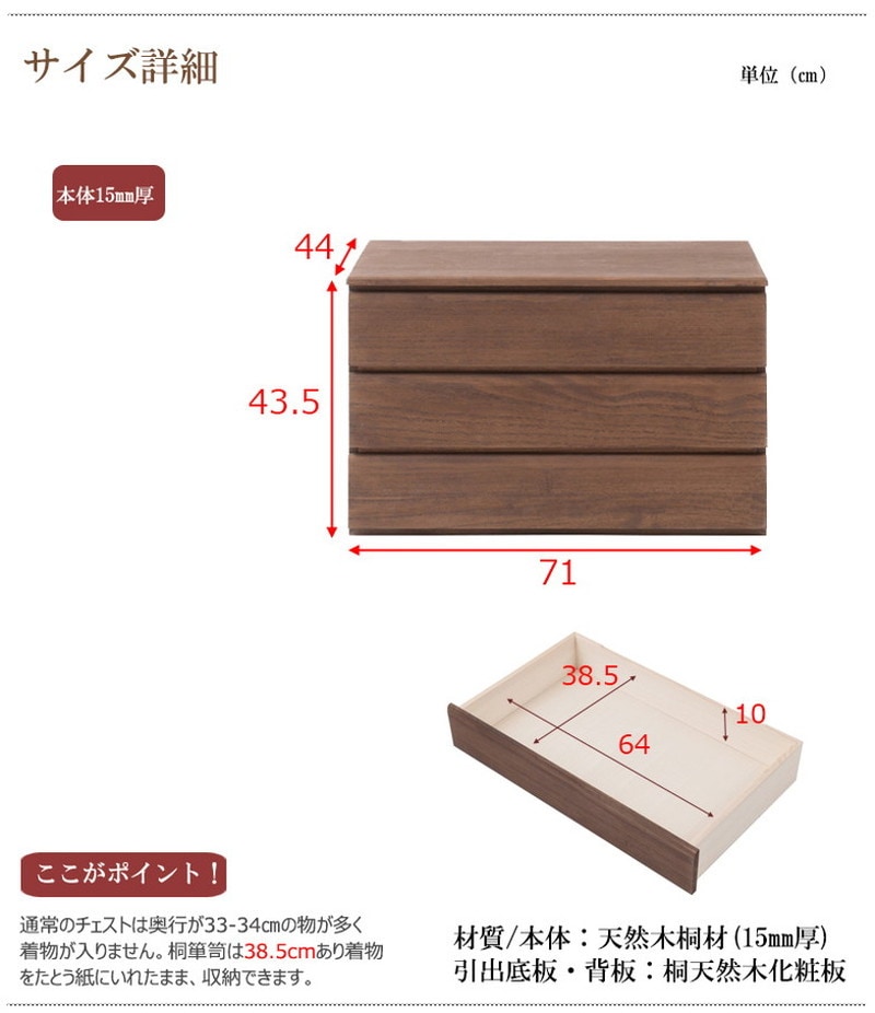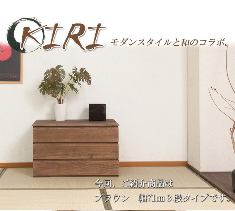 チェスト 日本製 桐 完成品 ブラウン 洋風 収納 たんす 幅71cm 3段 三段 国産 モダン おしゃれ 天然木 北欧 押入れ 引き出し 木目調【送料無料】
