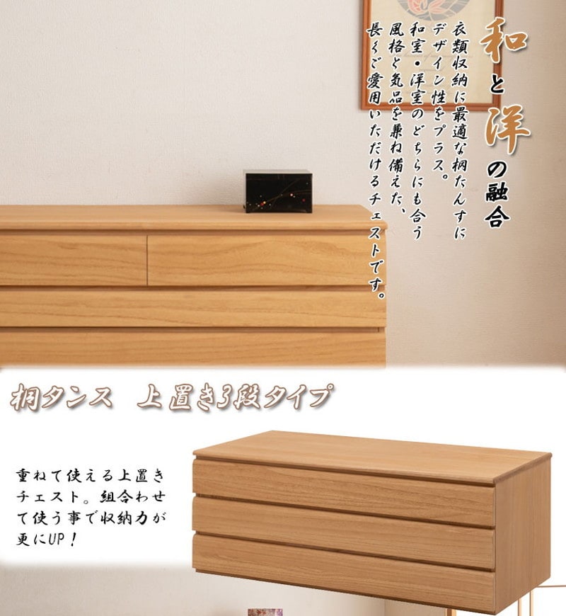 日本製 完成品 桐 洋風 チェスト 3段 三段 ナチュラル 薄茶 国産 タンス たんす 収納 衣類収納 シンプル 北欧 おしゃれ 押入れ 天然木【送料無料】