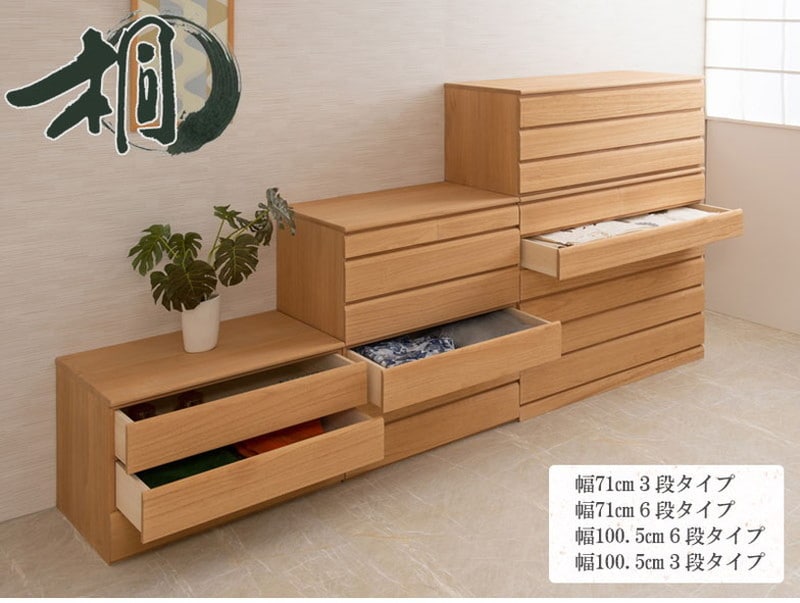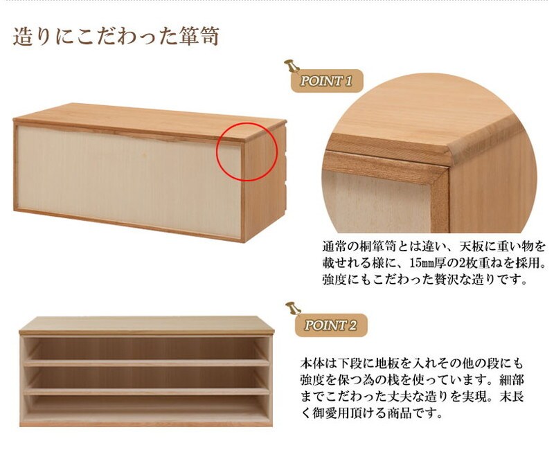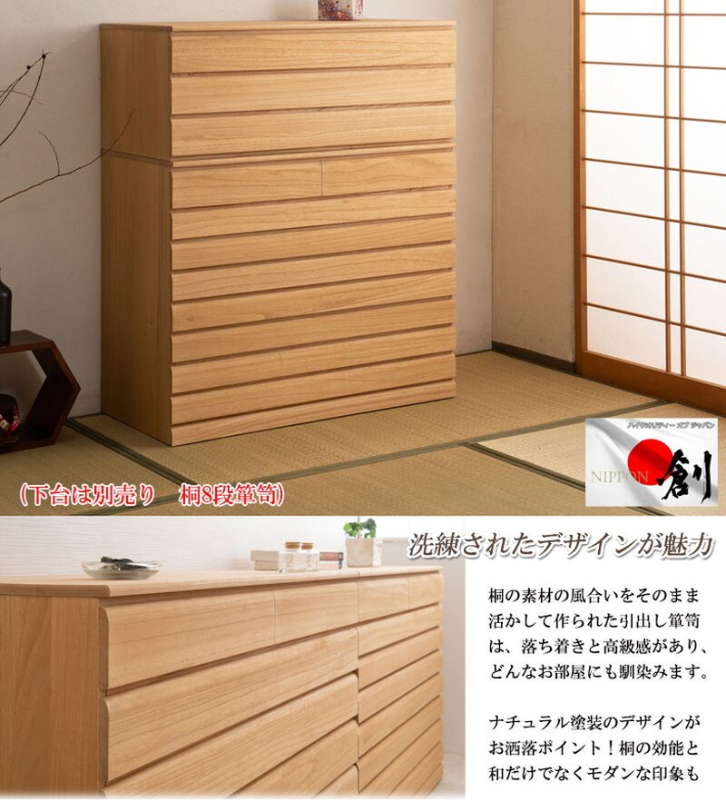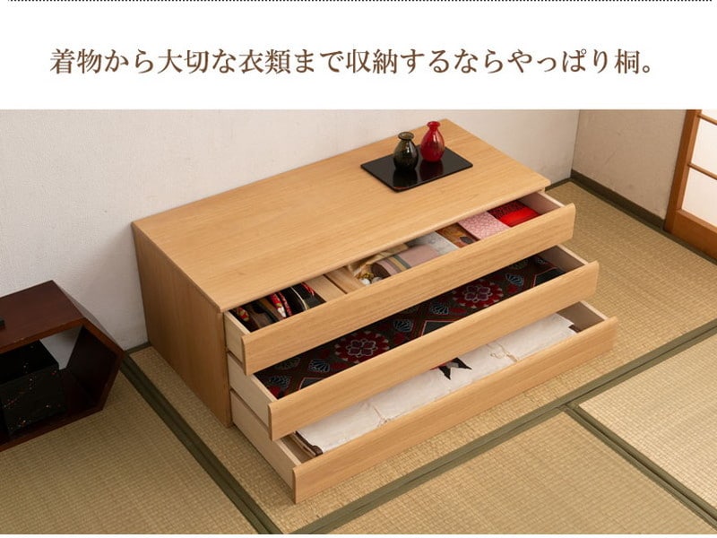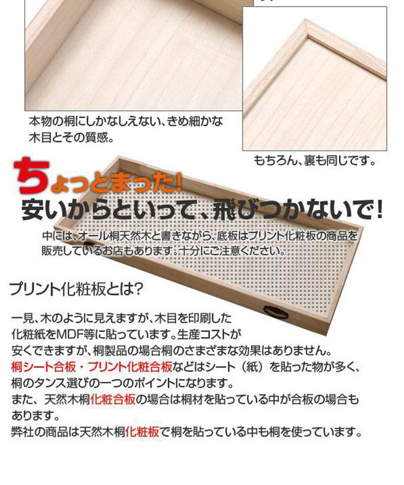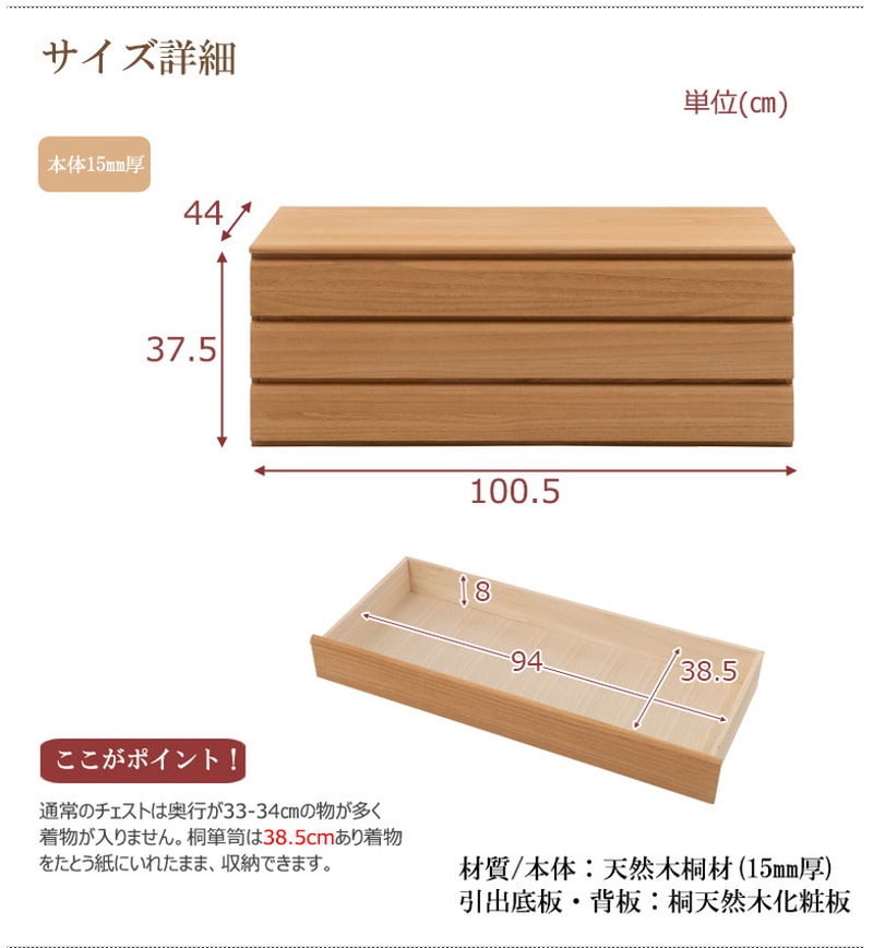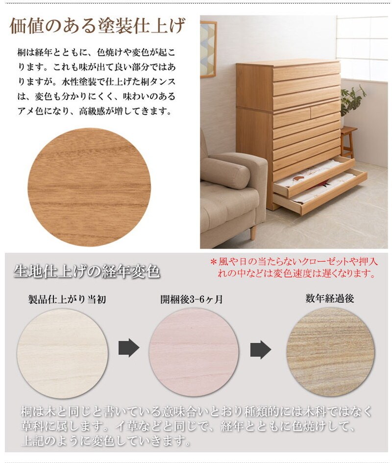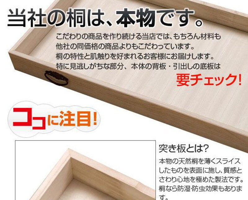 ■商品の仕様/本体:天然木桐材(水性塗装)、引出し底板・背板:天然木桐化粧板