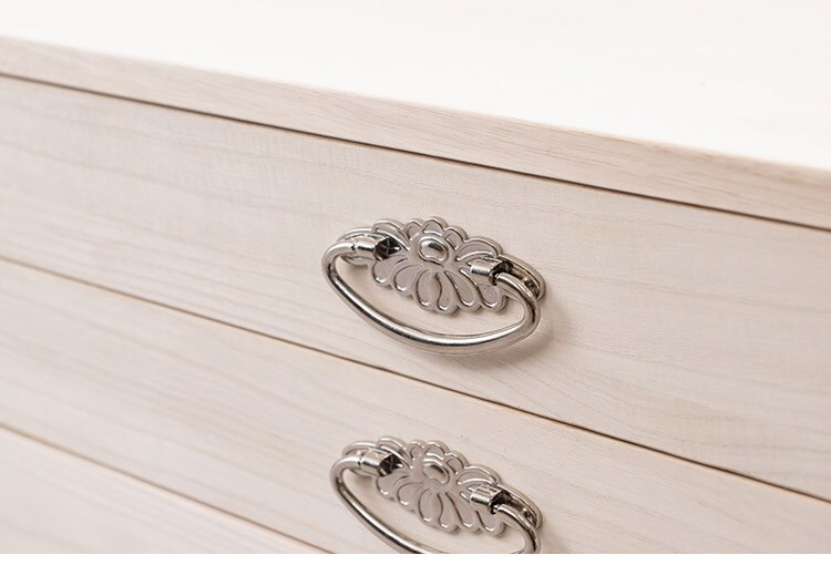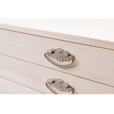桐の素材を活かした生地仕上げ&華やかな輝きを魅せるシルバー金具。塗装は一切せず、桐の素材をそのまま活かした生地仕上げ。桐の香りが漂ってくるような感じと、お部屋が自然な空間に感じられます。