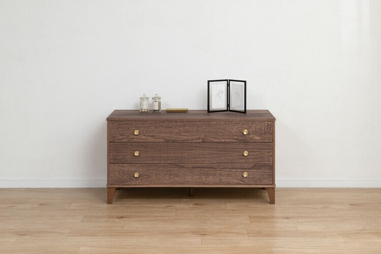 目を惹くゴールドに輝く引手は真鍮製で妖艶な印象。長くいい状態を保つため、真鍮変色を防ぐコーティングを施し、モダンな印象を損ないません。「桐×真鍮」この高貴なイメージはまさに心躍る最高のワードですね。また雰囲気のある脚は着脱可能ですので、シーンに合わせてお好みで。