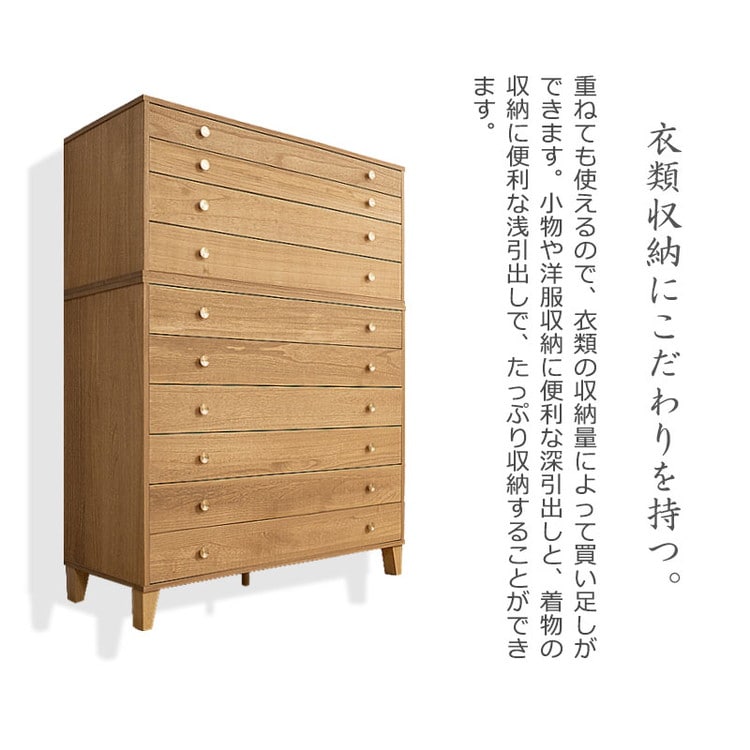 着物だけでなく大事な衣類の収納には本格的な桐の箪笥で保管を。良質な桐材を使用した桐チェストは、長めのたとう紙が入るワイドサイズで着物や洋服もたっぷり収納することができます。