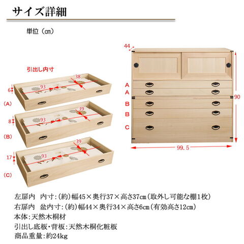 ■本体/3段45H(約)幅99.5×奥行44×高さ45cm 上置(約)幅99.5×奥行44×高さ45cm(奥行は取っ手を含んでおりません。取っ手を含むと2~3cmほど長くなります
