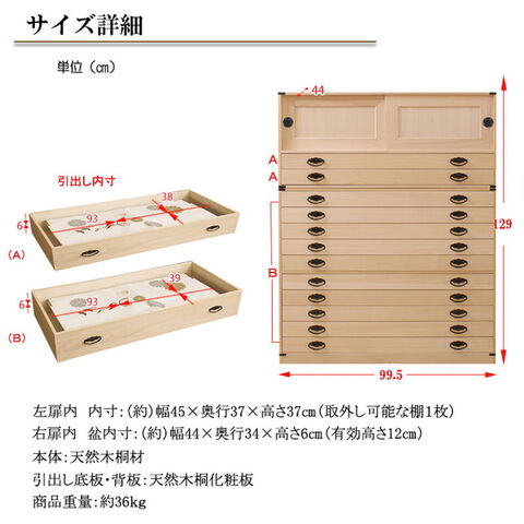■本体/10段(約)幅99.5×奥行44×高さ84cm 上置:(約)幅99.5×奥行44×高さ45cm(奥行は取っ手を含んでおりません。取っ手を含むと2~3cmほど長くなります)■本体/10段(約)幅99.5×奥行44×高さ84cm 上置:(約)幅99.5×奥行44×高さ45cm(奥行は取っ手を含んでおりません。取っ手を含むと2~3cmほど長くなります)■日本製