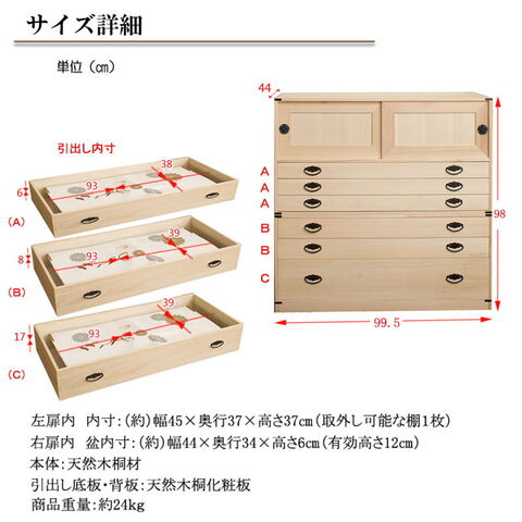 ■本体/3段45H(約)幅99.5×奥行44×高さ45cm 上置(約)幅99.5×奥行44×高さ53cm(奥行は取っ手を含んでおりません。取っ手を含むと2~3cmほど長くなります)
