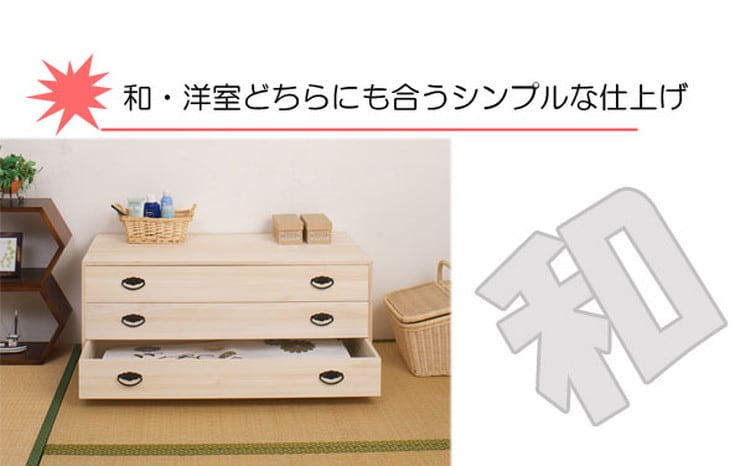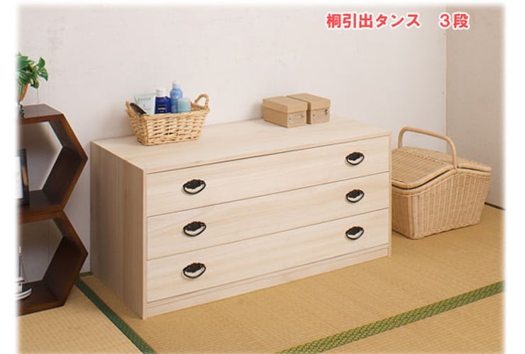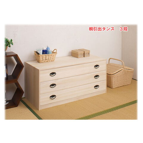 日本製 国産 完成品 桐引出しタンス3段 収納 桐収納 桐 引出し付き 押入れ収納 タンス たんす 箪笥 シンプル 和風 衣類収納【送料無料】