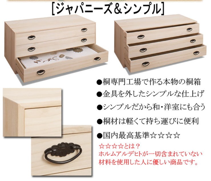■商品の仕様/本体:天然木桐材、引出し底板・背板:天然木桐化粧板