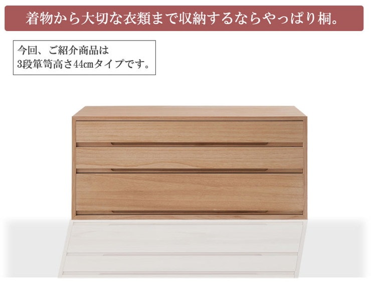 日本製 国産 完成品 桐箪笥3段 ナチュラル 収納 桐収納 桐 引出し付き 押入れ収納 タンス たんす 箪笥 シンプル 和風 衣類収納【送料無料】