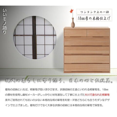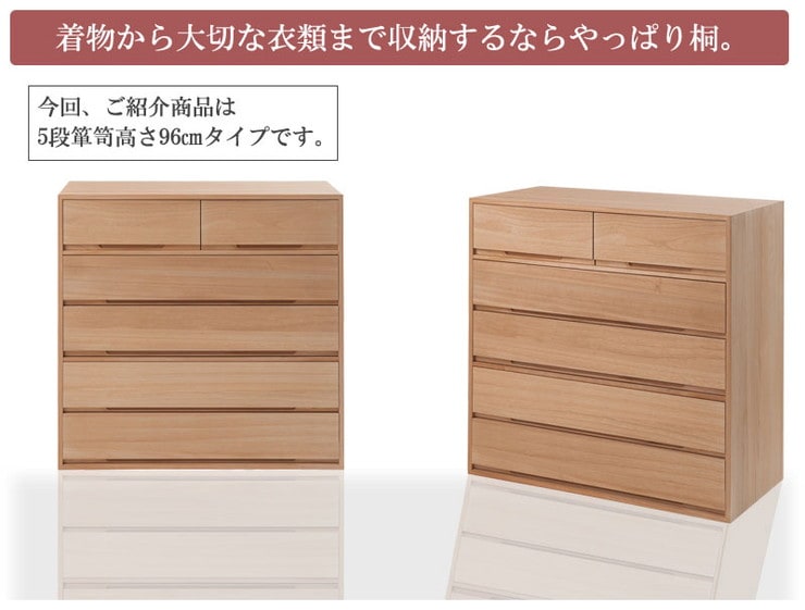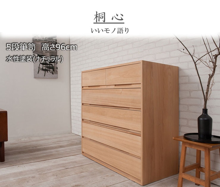 日本製 国産 完成品 桐箪笥5段 ナチュラル 収納 桐収納 桐 引出し付き 押入れ収納 タンス たんす 箪笥 シンプル 和風 衣類収納【送料無料】
