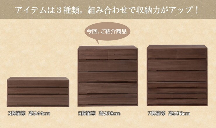 日本製 国産 完成品 桐箪笥5段 ブラウン 収納 桐収納 桐 引出し付き 押入れ収納 タンス たんす 箪笥 シンプル 和風 衣類収納【送料無料】