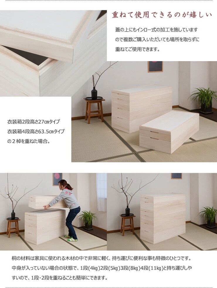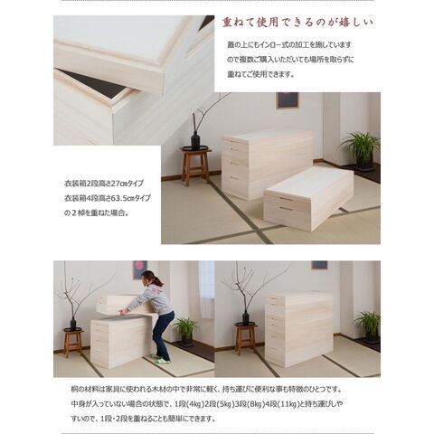 桐 衣裳ケース 日本製 完成品 国産 スタッキング 1段 収納 桐 天然木 押入れ 和風 和室 木製 木目調 軽量 大容量 衣装ケース 浴衣 和服【送料無料】