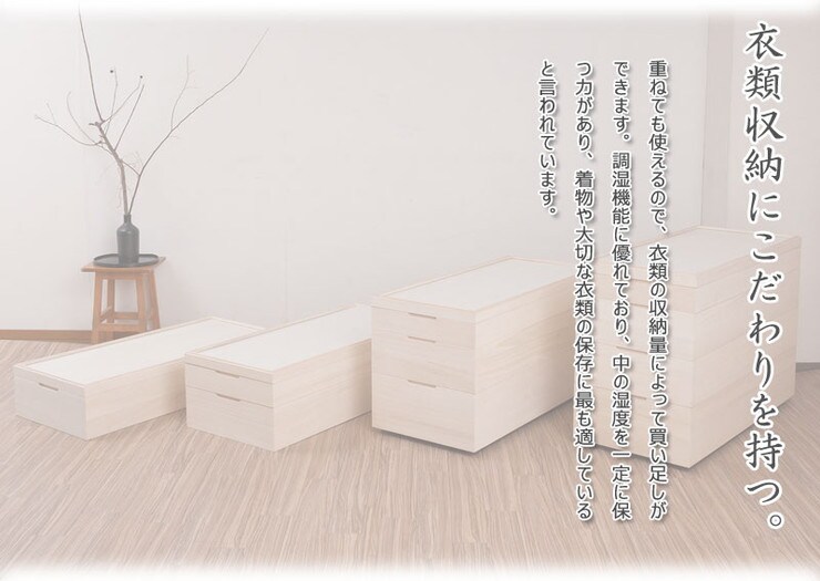 クローゼット上などコンパクトな1段タイプからラインナップし、着物や浴衣、洋服など長期保管におすすめです。