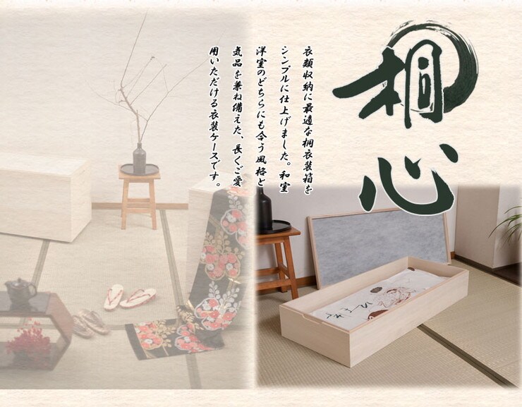 桐材は内部を一定の湿度に保とうとする働きがあるので大事な着物や洋服などを湿気から守る桐箱にしまうのがベスト。