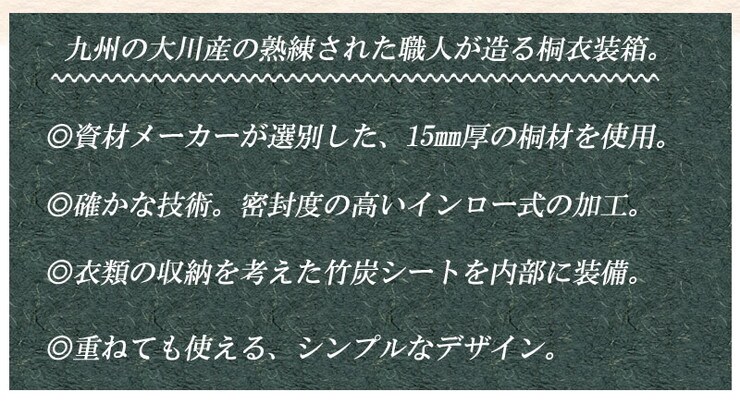 取っ手金物のないシンプルに仕上げたモダンな印象の桐衣装箱。