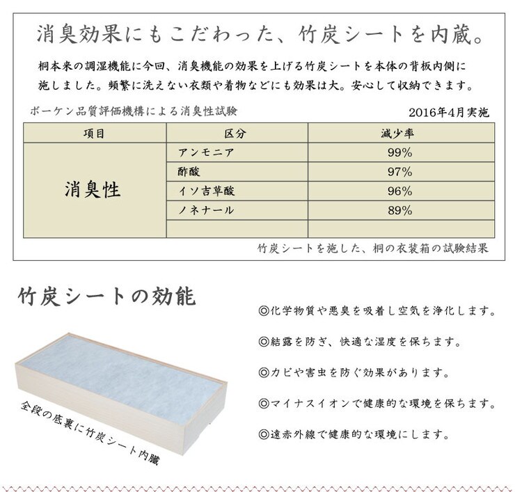 ■商品の仕様/本体:天然木(桐材)、底板・天板:天然木桐化粧板、盆裏内面:竹炭シート内蔵不織布