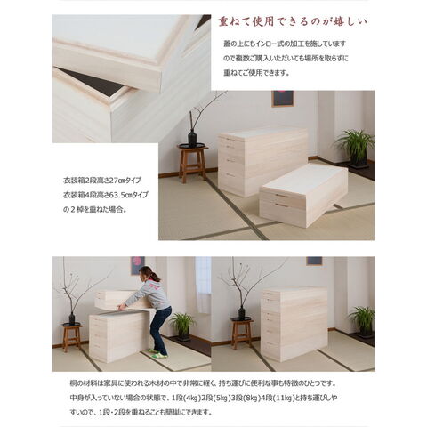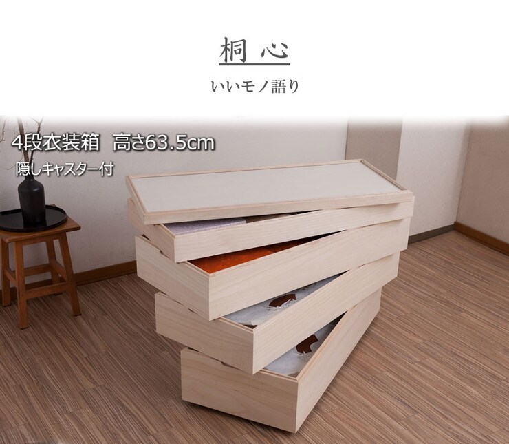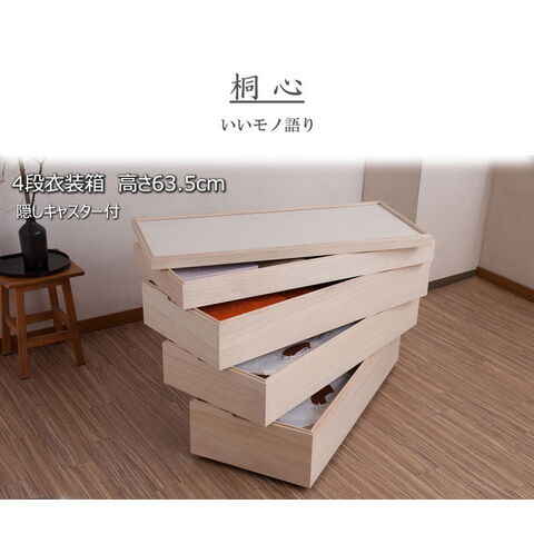 日本製 国産 完成品 キャスター付きスタッキング桐 4段 収納 桐収納 桐 押入れ収納 収納ボックス シンプル 和風 収納箱【送料無料】