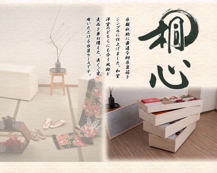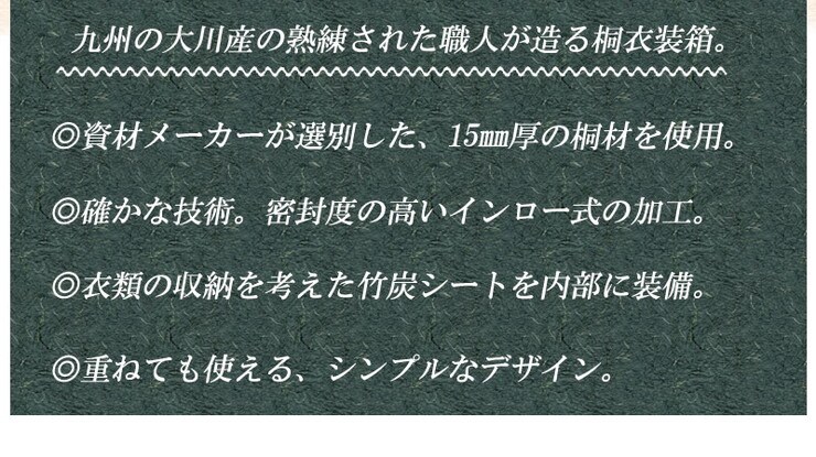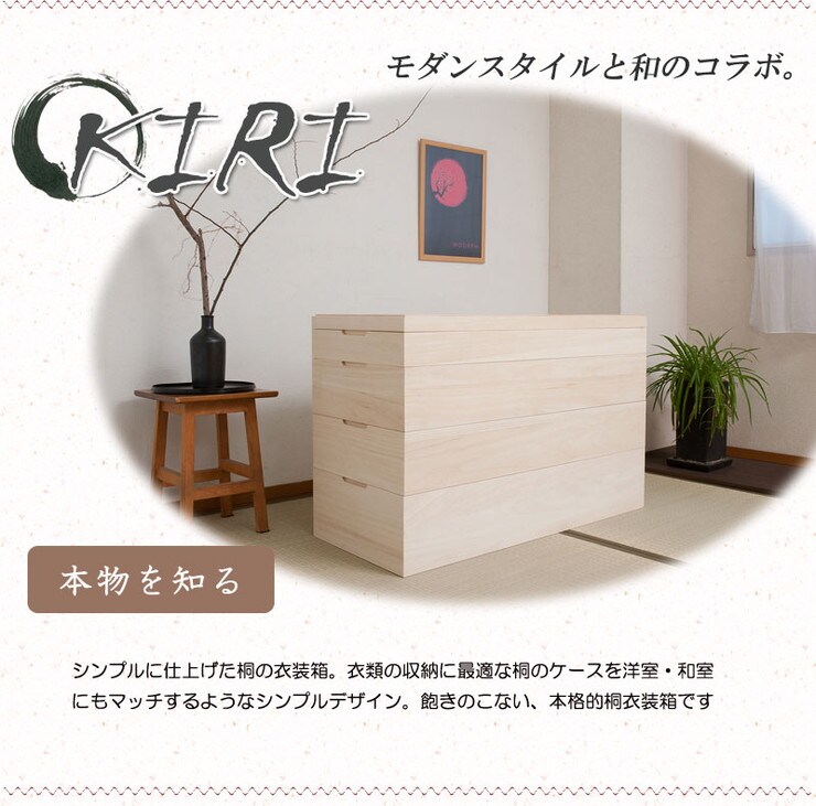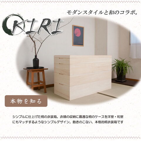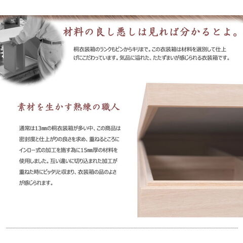 取っ手金物のないシンプルに仕上げたモダンな印象の桐衣装箱。