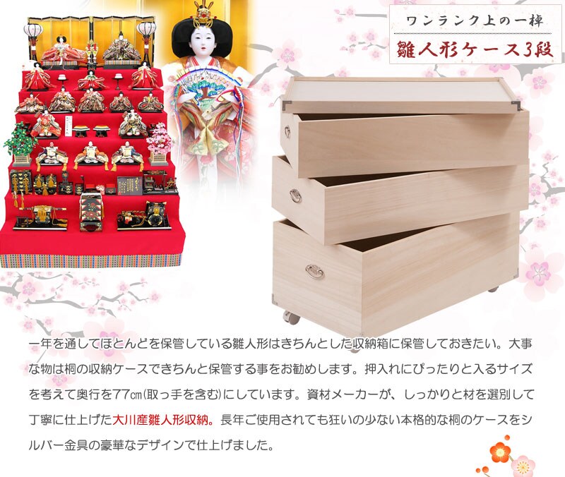 収納ケース、桐材、大川、雛人形入れ、人形入れ、新生活、ひな祭り、国産収納