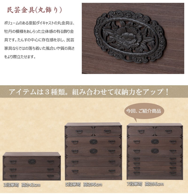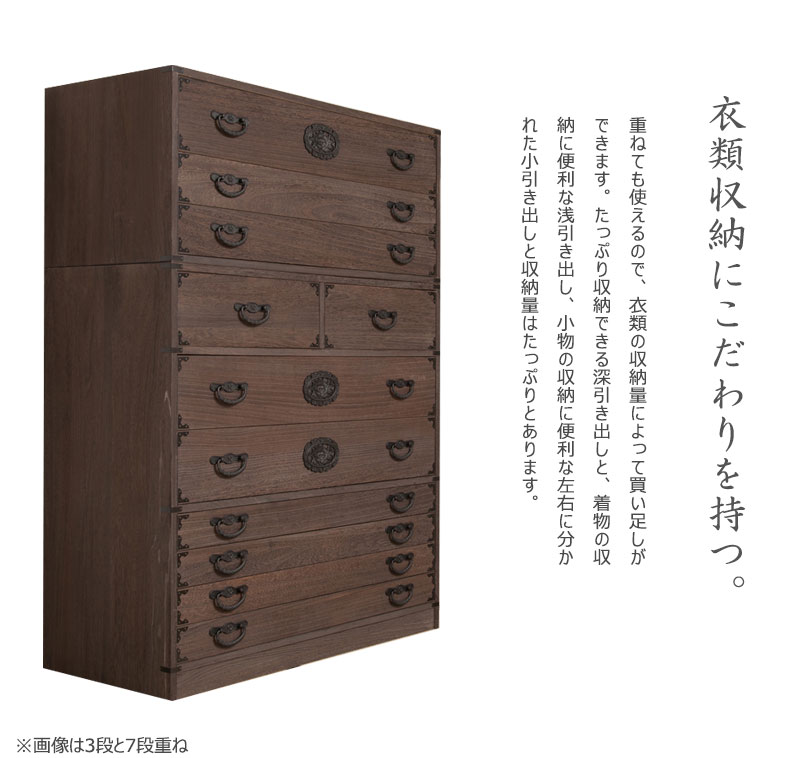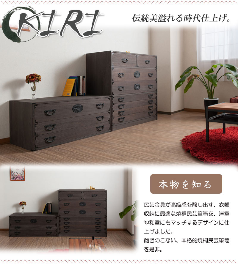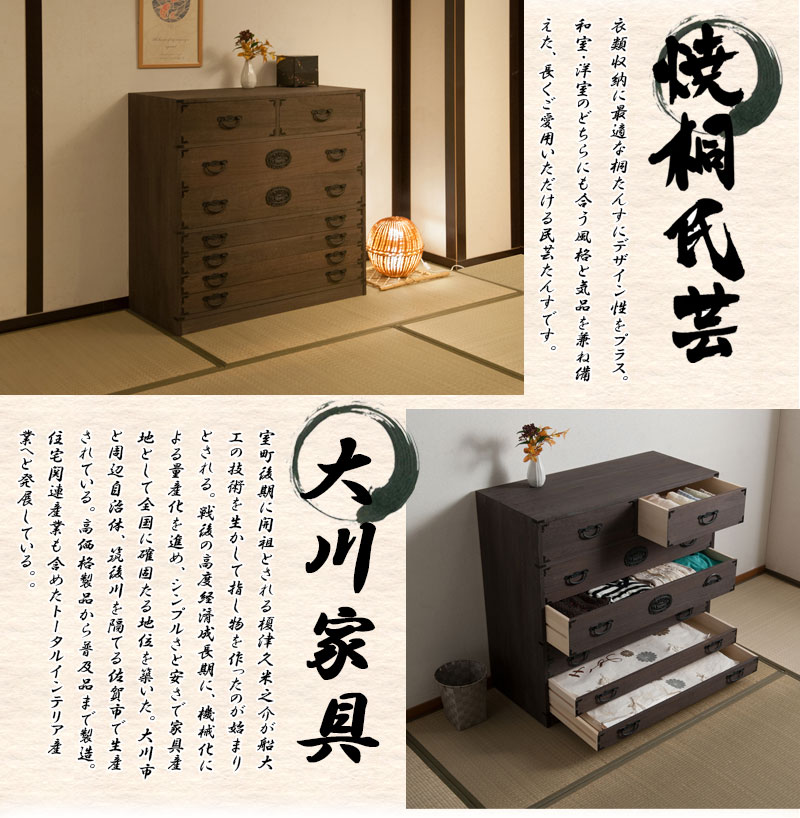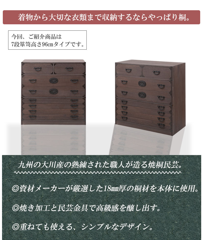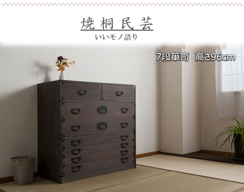 日本製 大川家具 民芸 焼桐 箪笥7段 七段 タンス 桐たんす 箪笥 収納 衣類収納 収納タンス 和風 和モダン おしゃれ 和室 国産【送料無料】