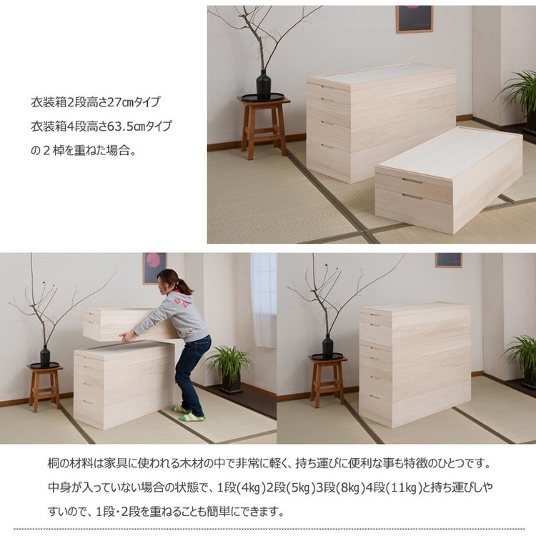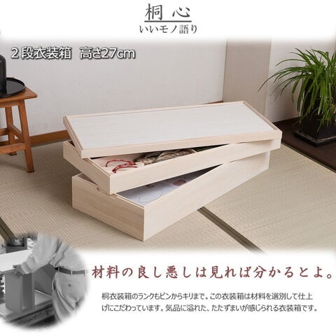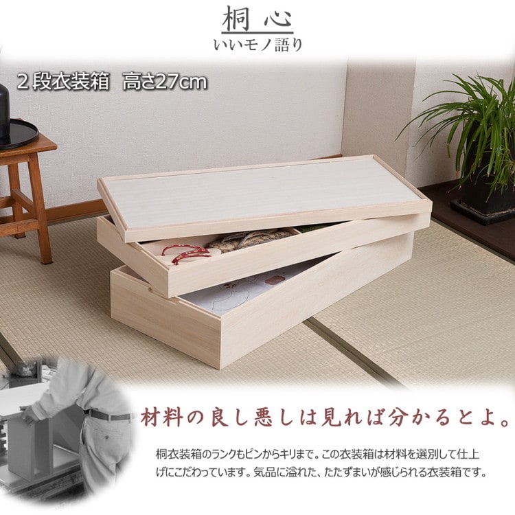 桐心 桐ケース 2段 衣装ケース 押入れ クローゼット 桐たんす 保管庫 保管ケース 竹炭シート 着物 衣類収納 洋服 浴衣 印籠式【送料無料】