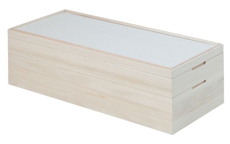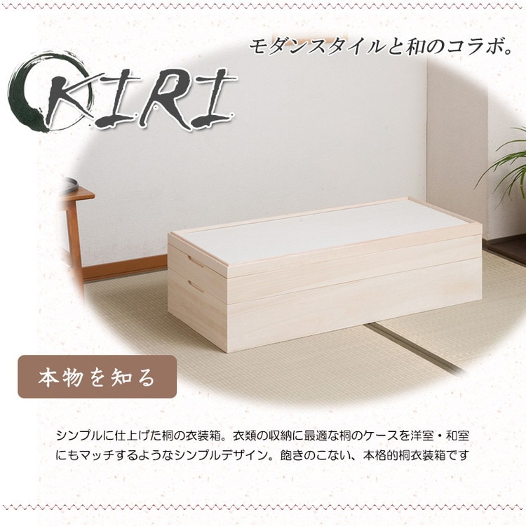 取っ手金物のないシンプルに仕上げたモダンな印象の桐箪笥。洋室などのフローリングにも合うデザインはリビングの中心にもはまる仕上がり。