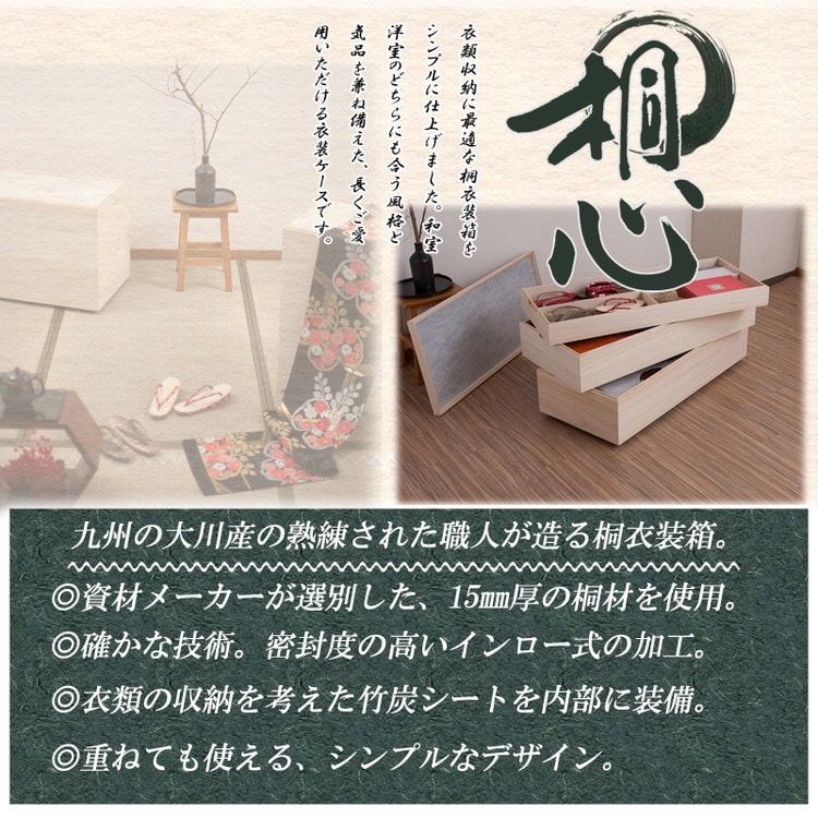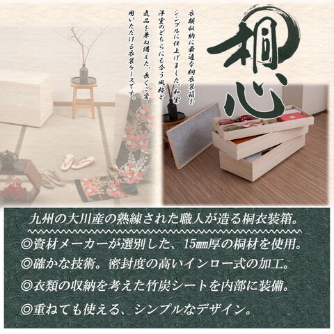 桐心 桐ケース 3段 衣装ケース 押入れ クローゼット 桐たんす 保管庫 保管ケース 竹炭シート 着物 衣類収納 洋服 浴衣 印籠式 キャスター コロ スタッキング【送料無料】