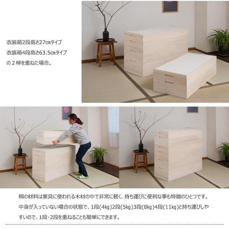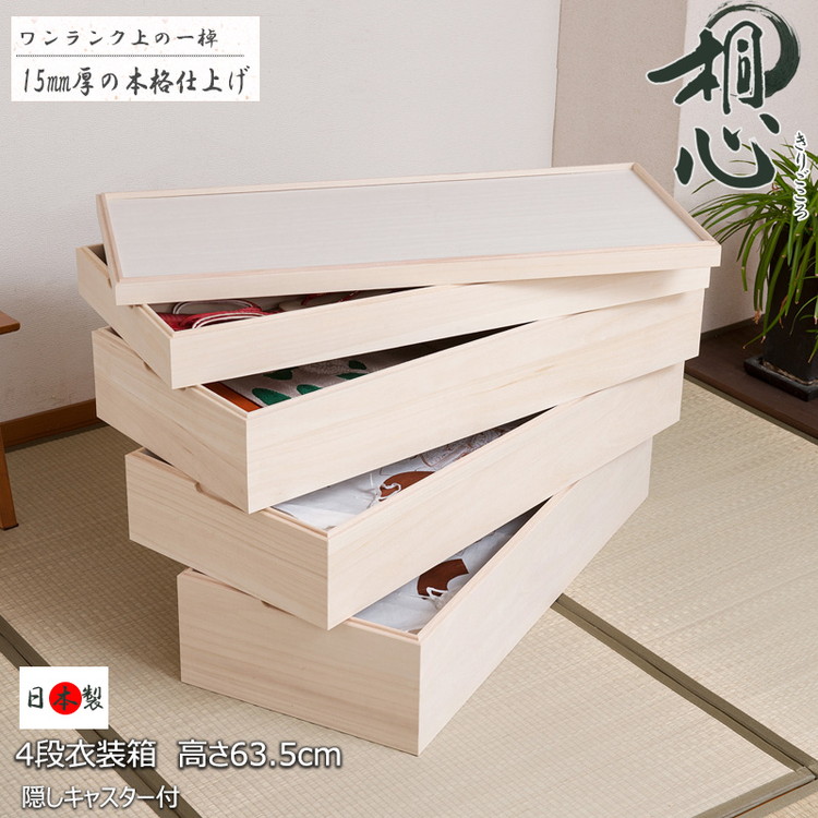 桐心 桐ケース 4段 衣装ケース 押入れ クローゼット 桐たんす 保管庫 保管ケース 竹炭シート 着物 衣類収納 洋服 浴衣 印籠式 キャスター コロ スタッキング【送料無料】