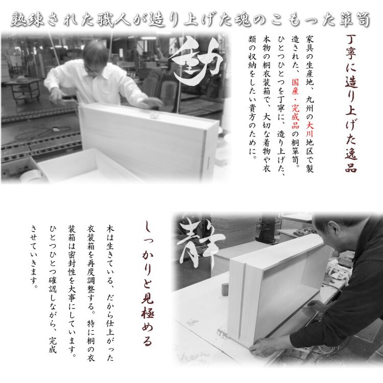 内部背板には竹炭シートを施しているので、消臭効果もプラス!クローゼットにもおさまるコンパクトサイズからラインナップし、着物や浴衣、洋服など長期保管に最適です。