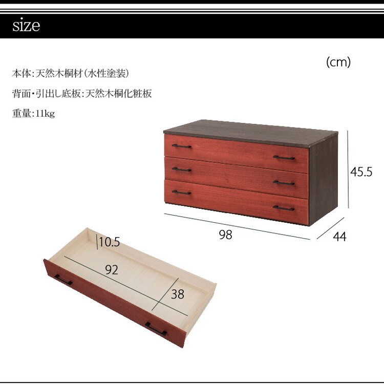 朱雀 総桐箪笥 3段 幅98 朱 民芸 李朝家具 和ダンス 和タンス 和箪笥 着物用 日本製 着物収納 引き出し チェスト 桐タンス 桐たんす 桐衣装箱 浴衣 天然木 木製 国産 衣裳ケース 収納タンス【送料無料】