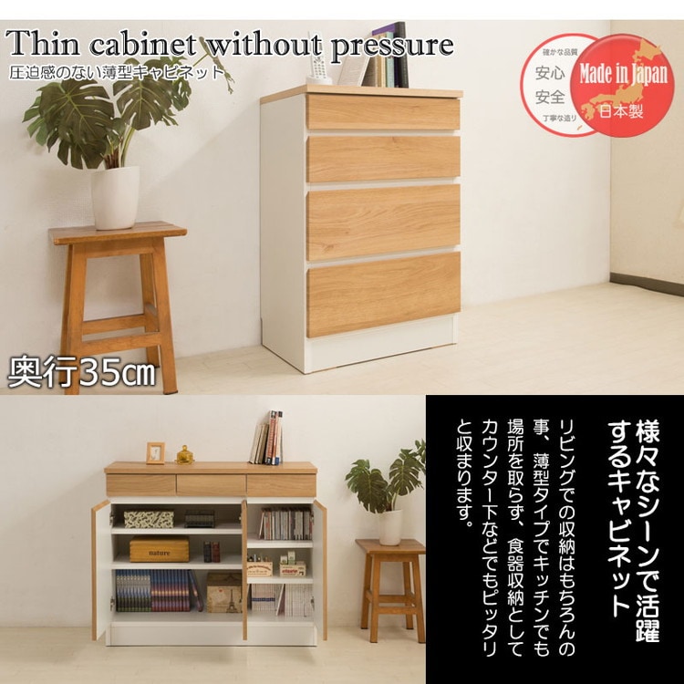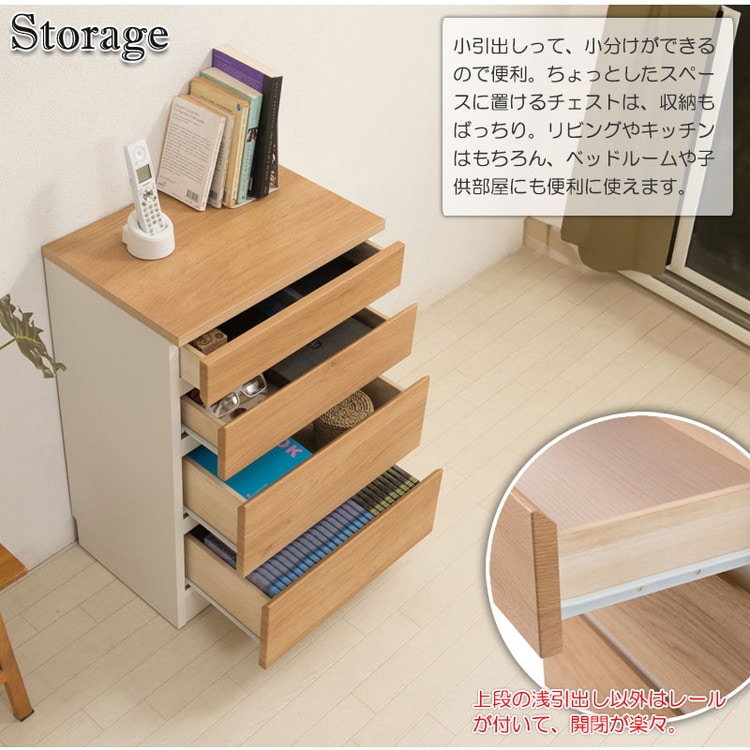gym スリムチェスト 幅50.5 チェスト 4段 木目 ナチュラル シンプル 北欧 リビング リビング収納 省スペース キッチンラック キッチンカウンター 収納 引き出し 国産 完成品 薄型【送料無料】