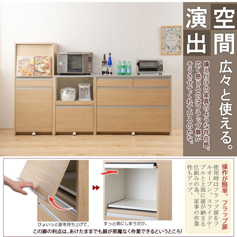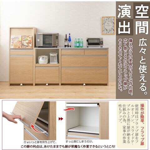日本製 完成品 幅57.5 レンジ台 ロータイプ マリンナチュラル 食器棚 引き出し フラップ式 木目調 木製 ナチュラル アンティーク 北欧 おしゃれ レンジボード キッチンボード【送料無料】