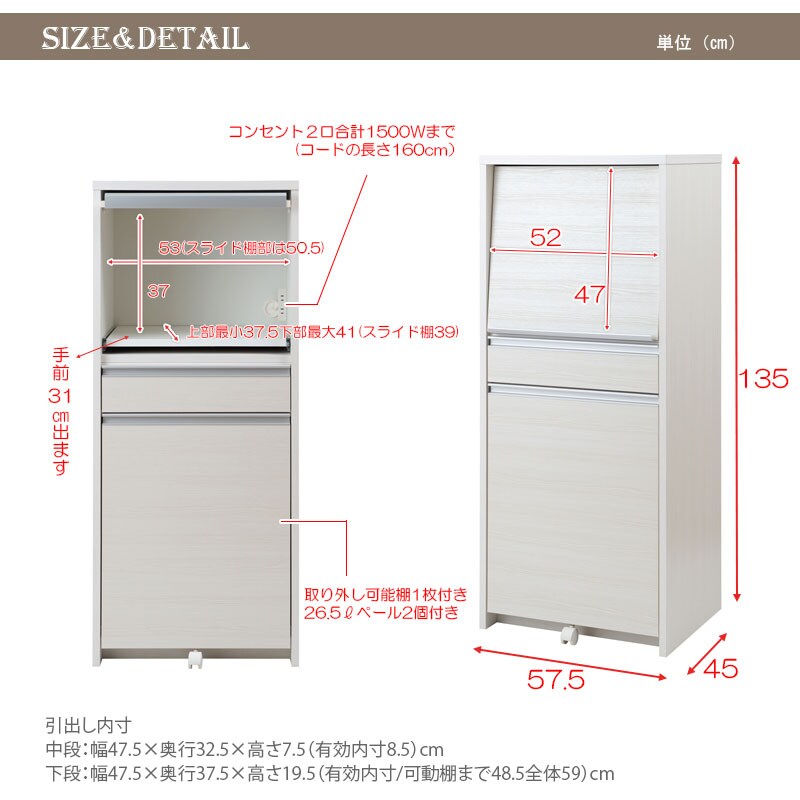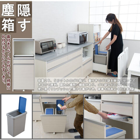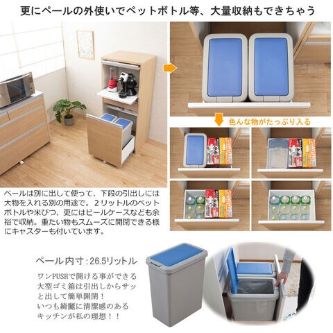 下段の大きな引出しには26.5リットルの大容量&フタ付きペールが2個付属。