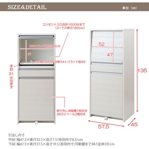 引き出し内寸下段:約幅47.5×奥行き37.5×深さ19.5cm