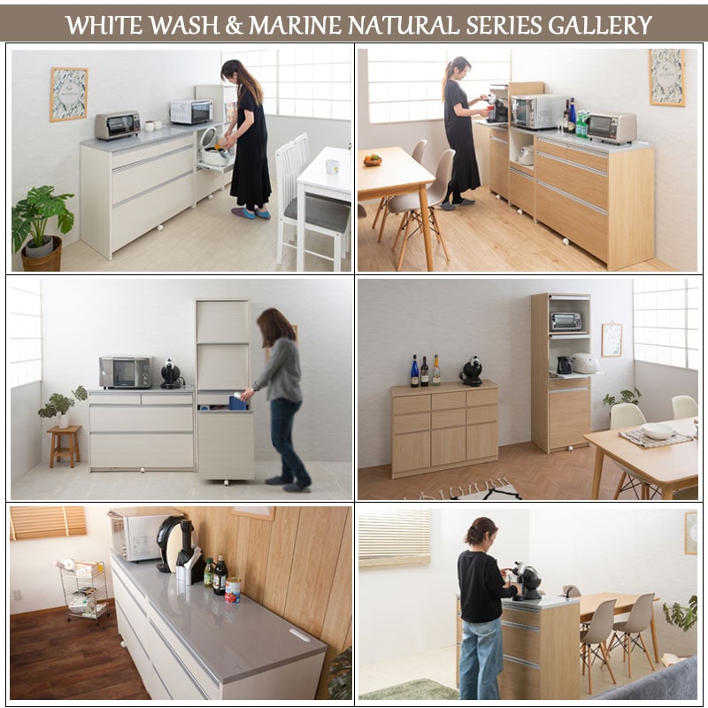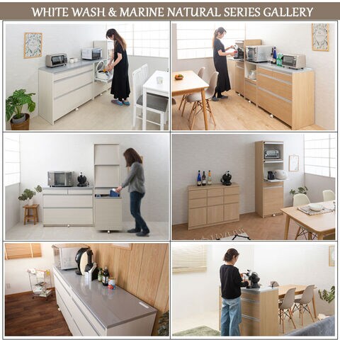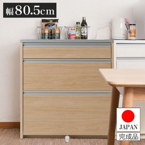 日本製 完成品 キッチンカウンター 幅80.5 マリンナチュラル アンティーク 北欧 カウンター 引き出し キャスター付き 鏡面仕上げ 木製 木目調 おしゃれ 北欧 大容量 国産 収納【送料無料】