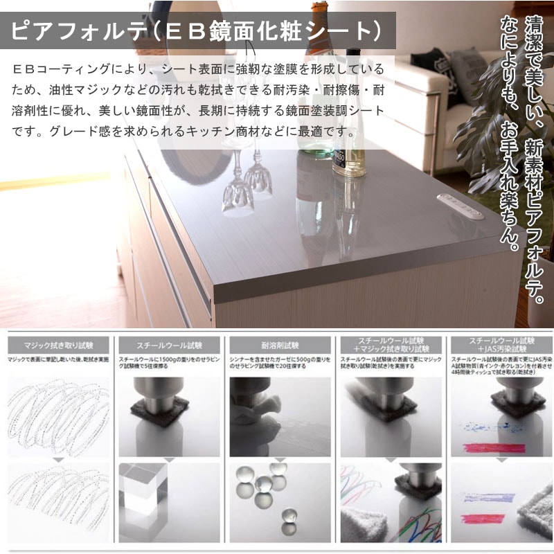 天板:ハイグロス化粧繊維板(キズ汚れ防止加工ピアフォルテ)