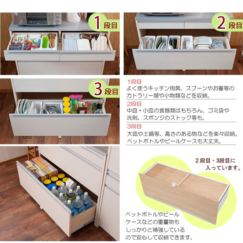 引出し収納部:強化プリント紙化粧繊維板(汚れ防止加工クリーンイーゴス)